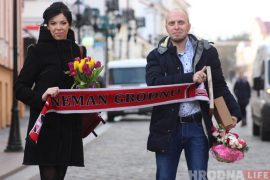 В День всех влюблённых хоккейный «Неман» на матче с «Юностью» сделал подарок своим болельщикам, которые 14 февраля решили узаконить отношения. Для Дианы и Вадима…
