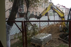 Вишню у тротуара ломали экскаватором, так как, по словам строителей, не было пил. Это произошло в субботу 11 мая на стройке по улице Большой…